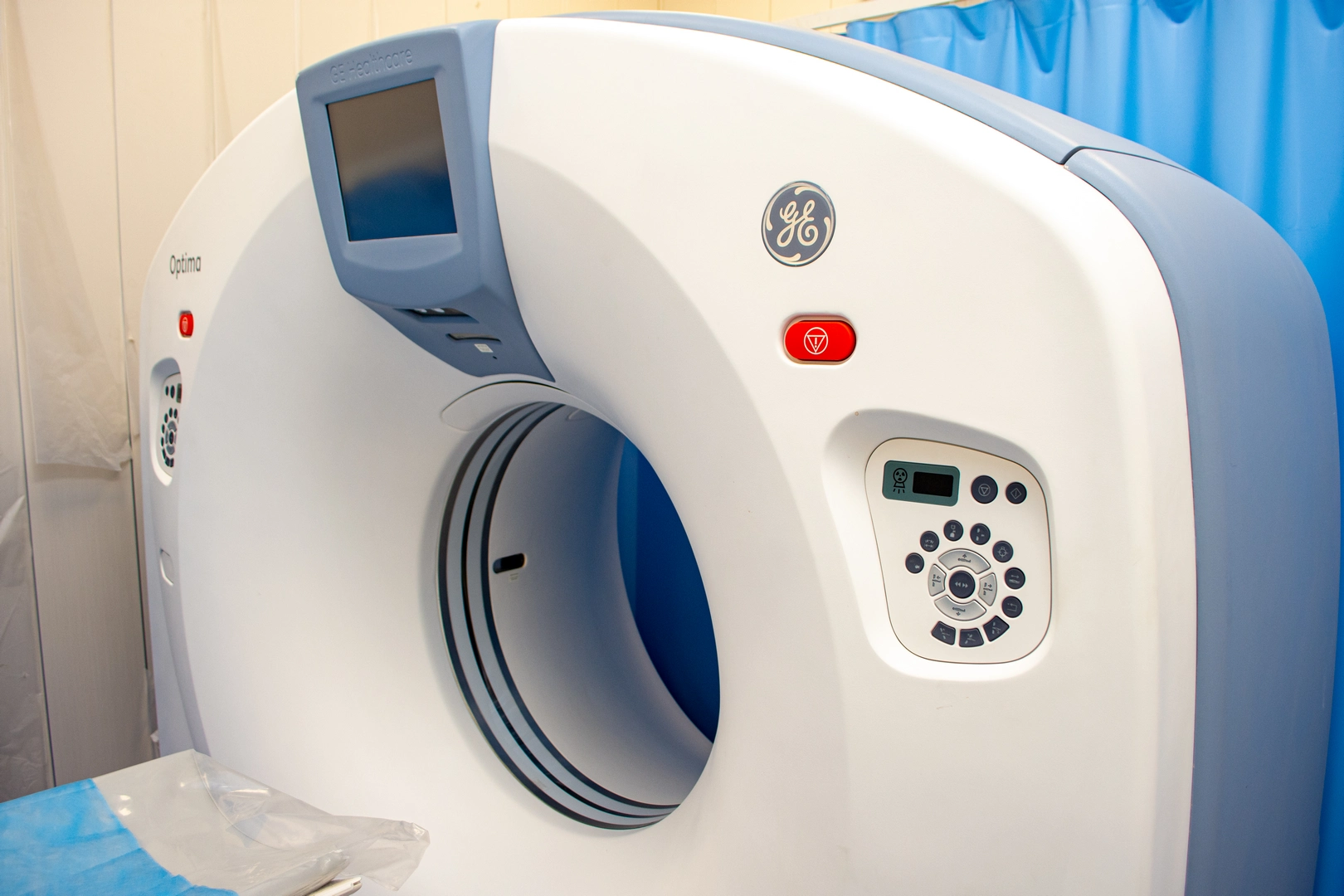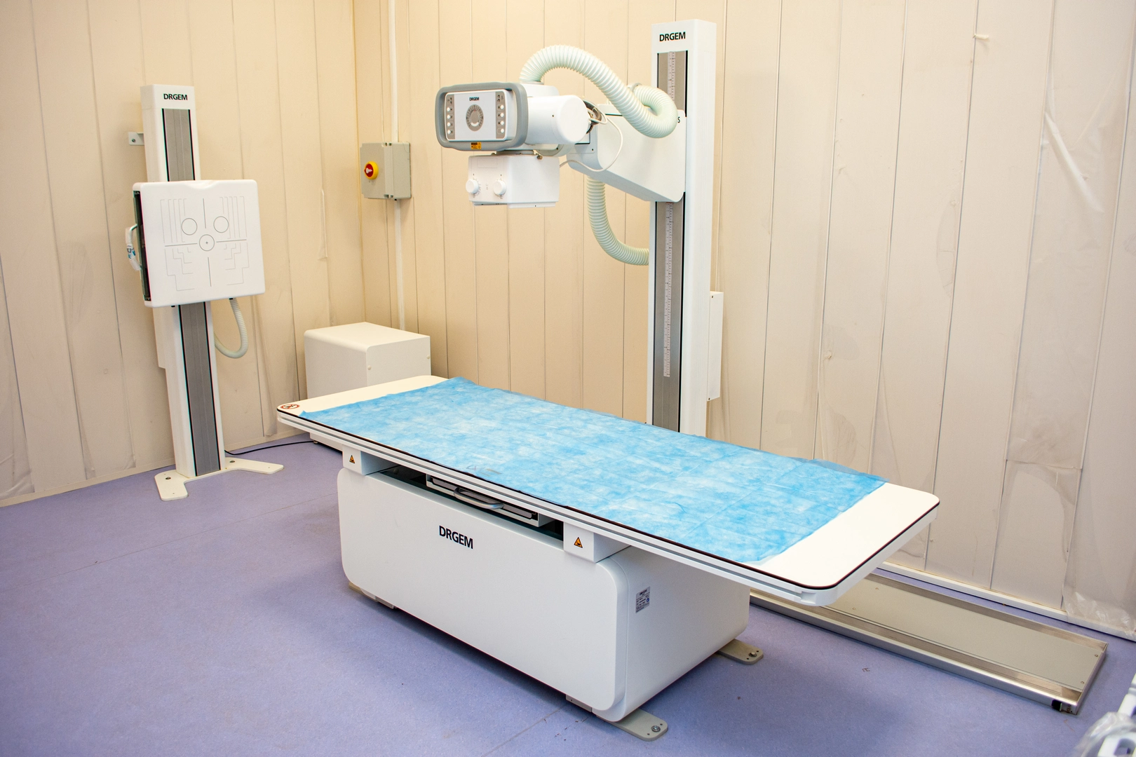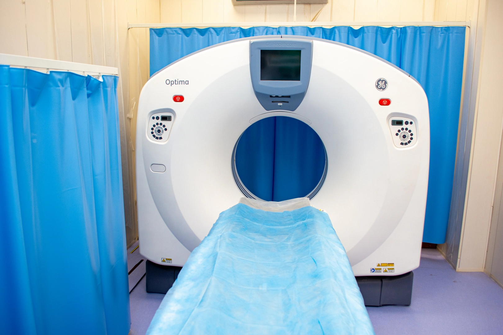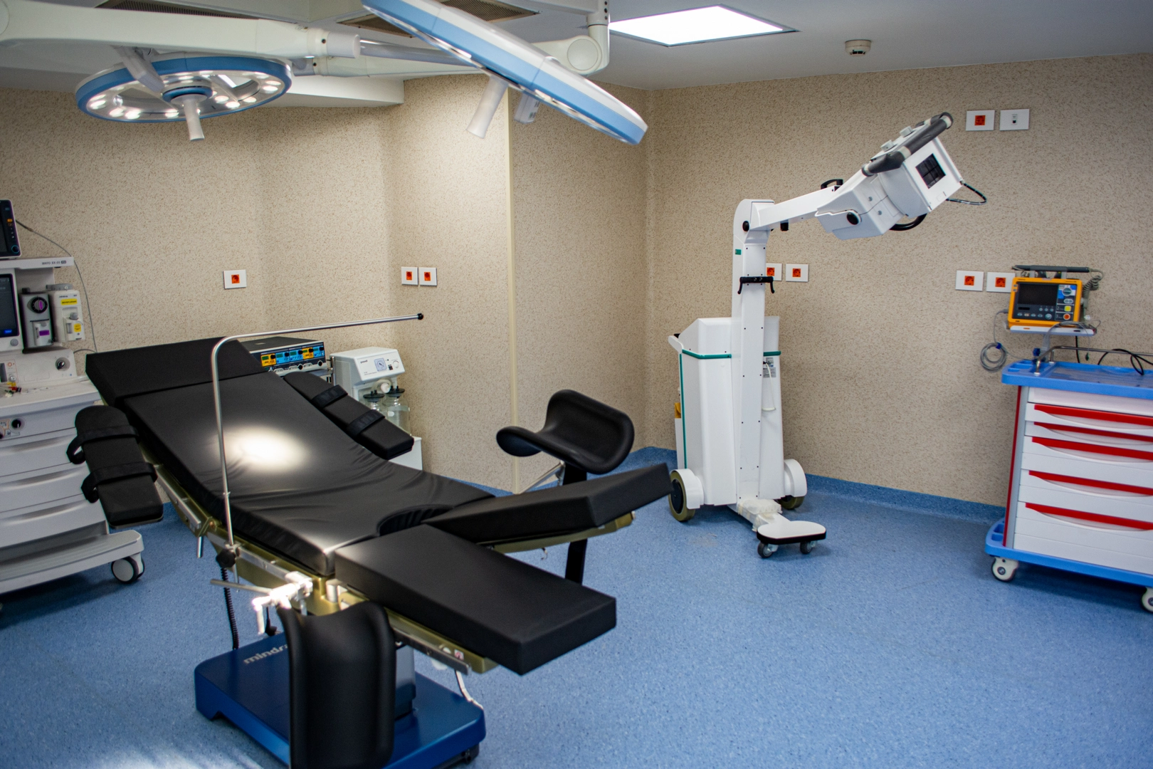 A photograph of AlMOMAIZ Hospital, Egypt’s leading hospital, a sprawling complex featuring extensive facilities across multiple floors, including a large number of rooms, modern operating theatres, neonatal incubators, a comprehensive diagnostic laboratory, and advanced radiology services.